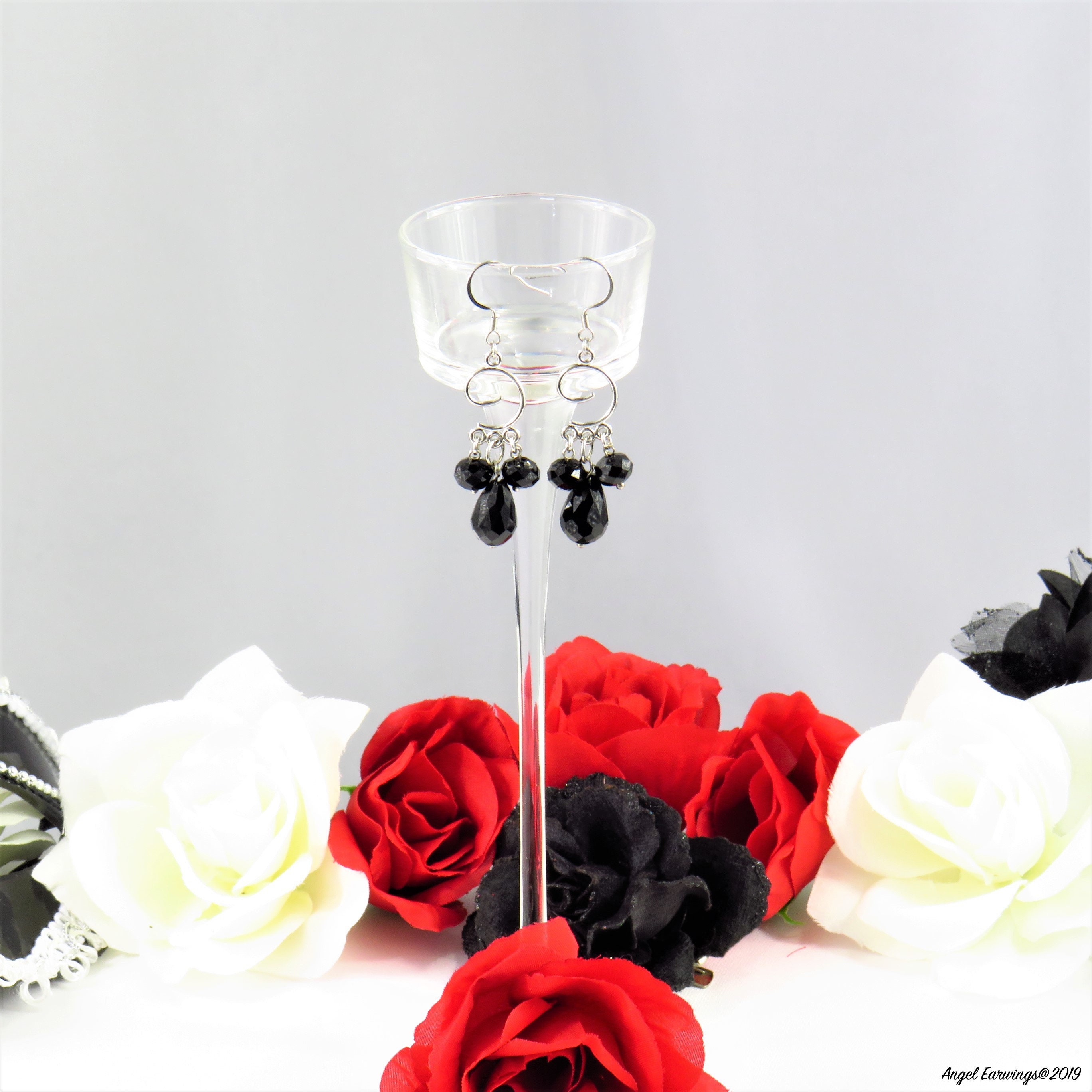 Elevate your style with the "Black Crystal" earrings, a sophisticated blend of elegance and sparkle. At the heart of this design is a striking black teardrop-shaped bead, elegantly framed by two black rondelle beads on each side. This refined combination offers a perfect balance of contrast and shine, exuding timeless sophistication.